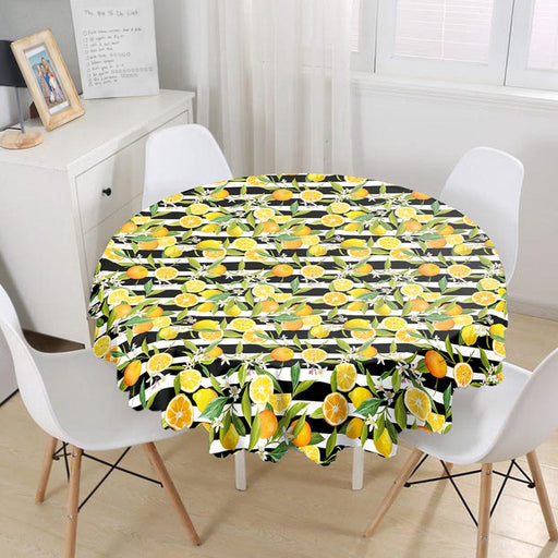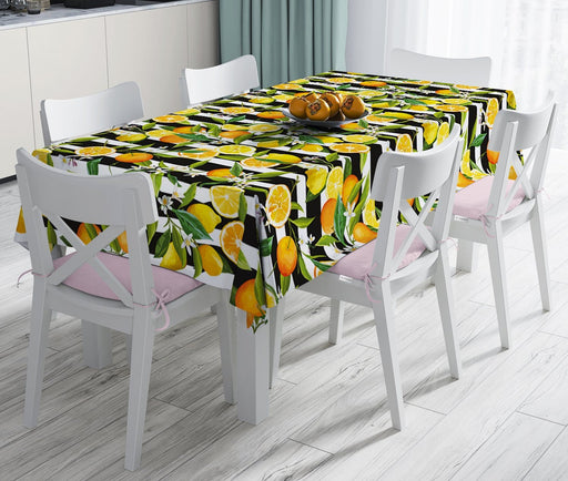 Çizgili Siyah Zeminli Limon Desenli Dekoratif Leke Tutmaz Masa Örtüsü