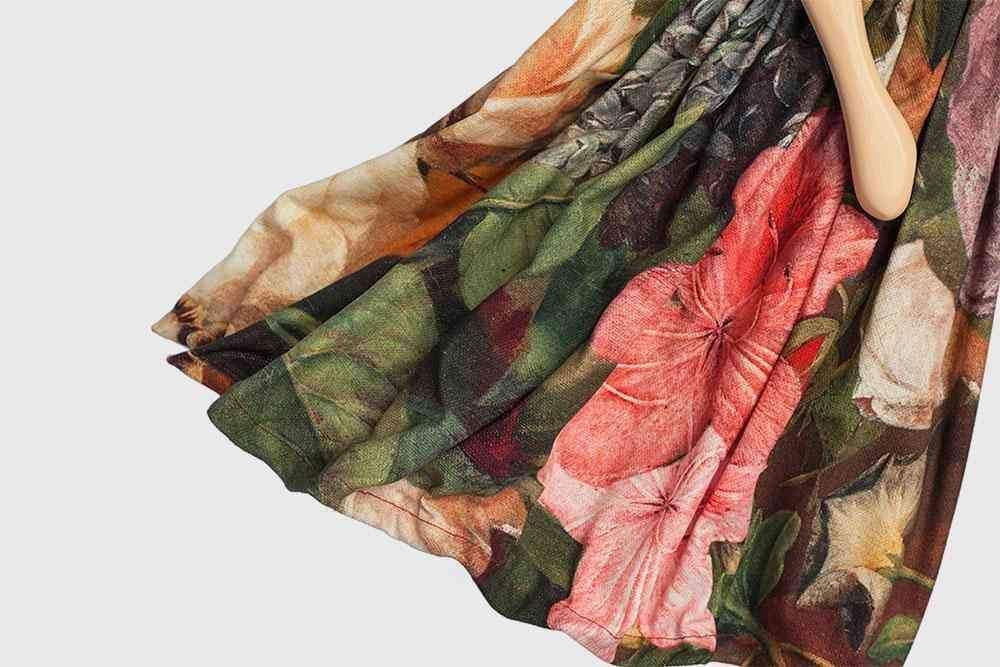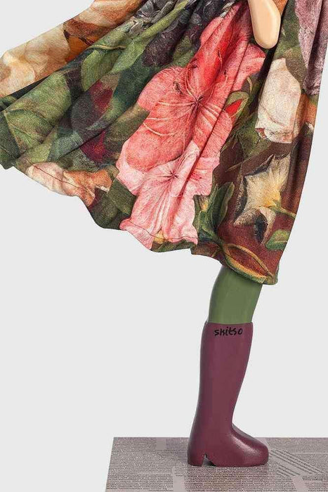 Çiçek bahçesini andıran kıyafetiyle Mickela Skitso’nun gözde aydınlatmalarından biri. Mickela’nın desen ve renk uyumu insana mutluluk veriyor.