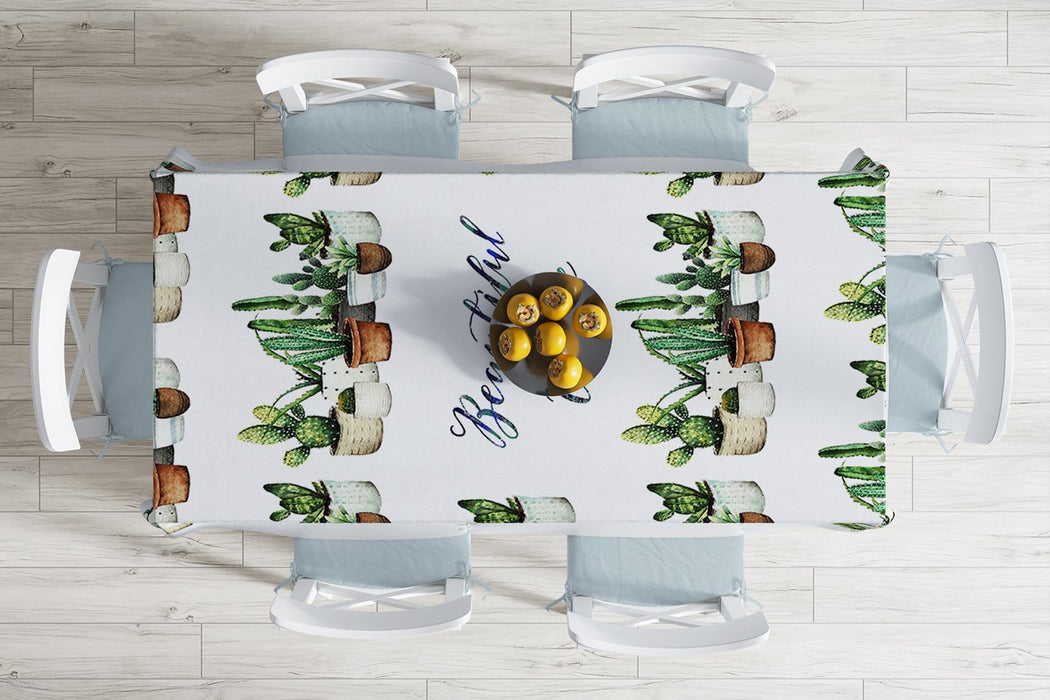 Beautiful Cactus Baskılı Dijital Leke Tutmaz Masa Örtüsü