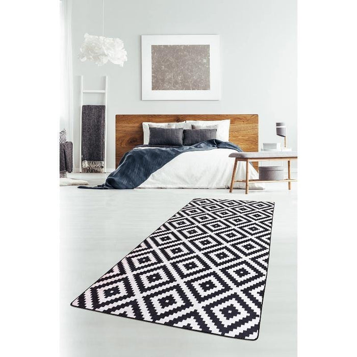 Black White Dijital Baskılı Halı, Kaymaz Taban, Yıkanabilir