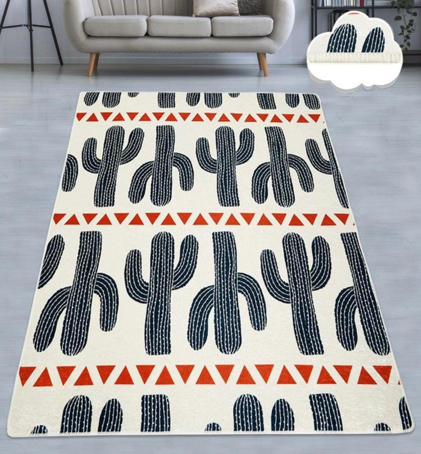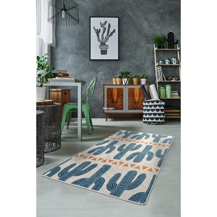Cactus Time Dijital Baskılı Halı, Kaymaz Taban, Yıkanabilir