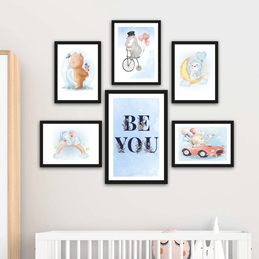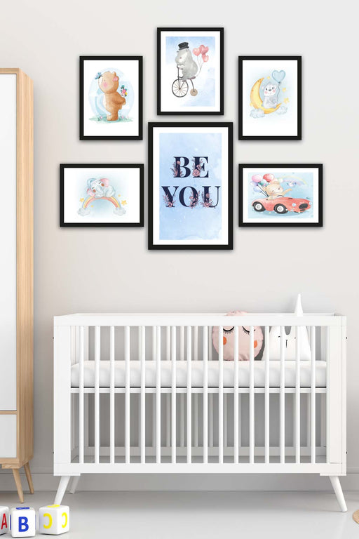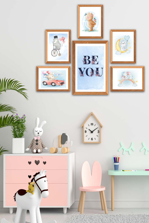 Orijinal World of Walls 6 Parça Çocuk Odası Suluboya Tarzında Siyah Çerçeve Görünümlü Uv Baskı Mdf Ahşap Duvar Tablo Seti Materyal: %100 mdf ürün 6...
