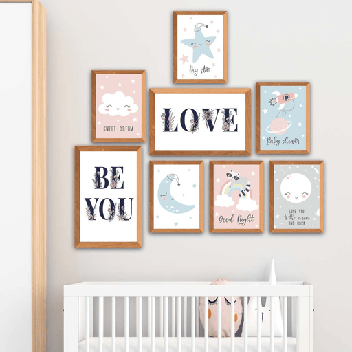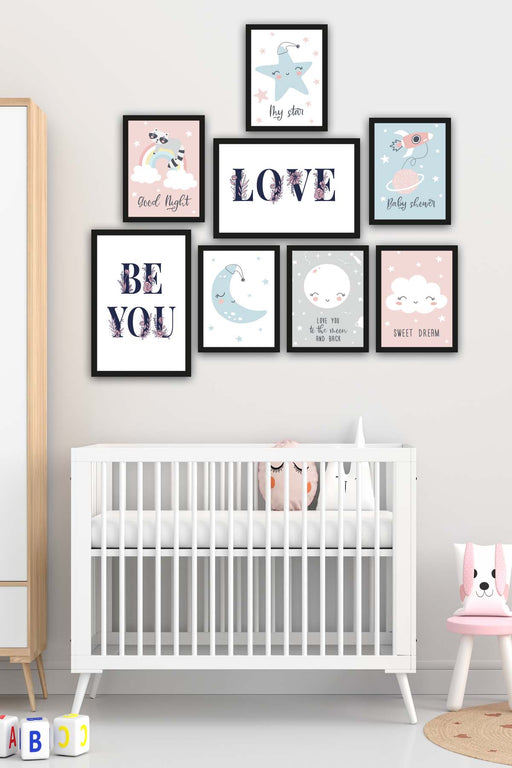 Tüm ayrıntıları görüntüleWow 8 Parça Çocuk Odası Suluboya Gökyüzü Siyah Çerçeve Görünümlü Uv Baskı Mdf Ahşap Duvar Tablo Seti