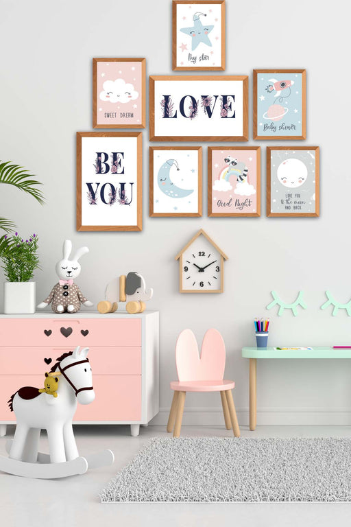 Orijinal World of Walls 8 Parça Çocuk Odası Suluboya Tarzında Çerçeve Görünümlü Uv Baskı Mdf Ahşap Duvar Tablo Seti Materyal: %100 mdf ürün 8 parça...