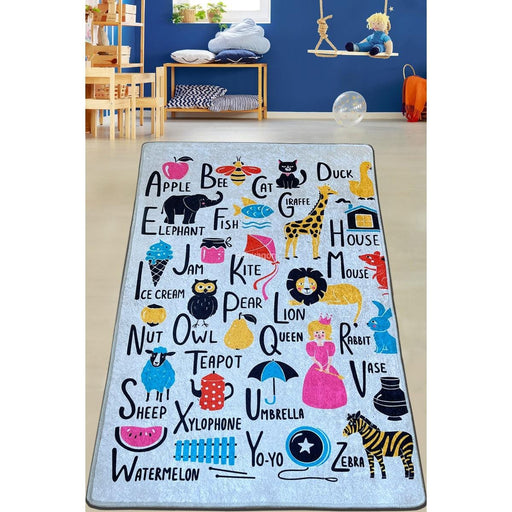 Alfabe Meredith Dijital Baskılı Dekoratif Çocuk Halısı, Kaymaz Taban, Yıkanabilir Alfabe Meredith Dijital Baskılı Dekoratif Çocuk Halısı Üzerinde İ...