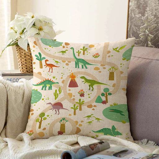 Tüm ayrıntıları görüntüleDinozor Desenli Oyun Yolları Tasarımlı Çocuk & Genç Odası Modern Yastık Kırlent Kılıfı