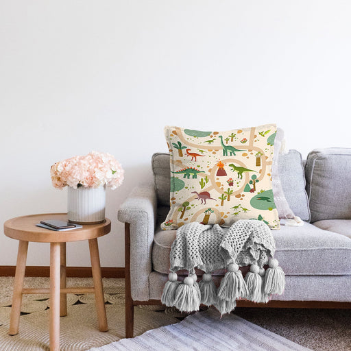 Dinozor Desenli Oyun Yolları Tasarımlı Çocuk & Genç Odası Modern Yastık Kırlent Kılıfı R Home çift taraflı ince kadife örme kırlent kılıflarıy...