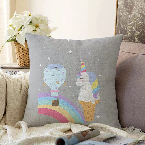 Tüm ayrıntıları görüntüleGri Zeminde Unicorn Tasarımlı Çocuk Odası Raşel Kadife Yastık Kırlent Kılıfı