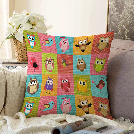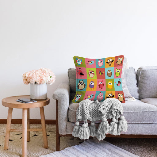 Tüm ayrıntıları görüntüleRenkli Kareli Puantiye Sevimli Baykuşlar Çocuk & Genç Odası Modern Yastık Kırlent Kılıfı
