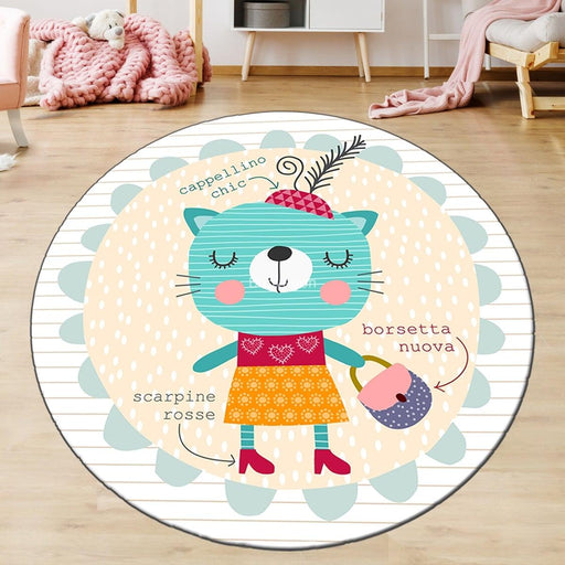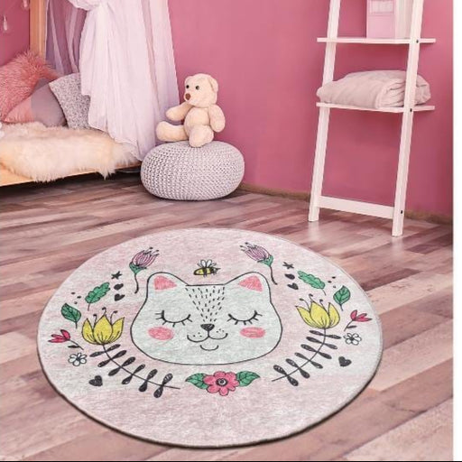 Tüm ayrıntıları görüntüleSevimli Kedi Neko Dijital Baskılı Yuvarlak Çocuk Halısı, Kaymaz Taban, Yıkanabilir