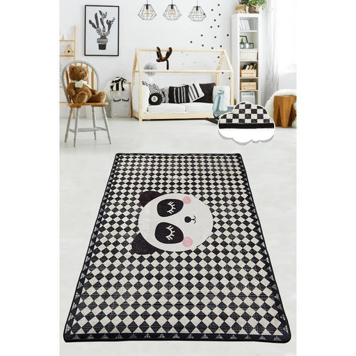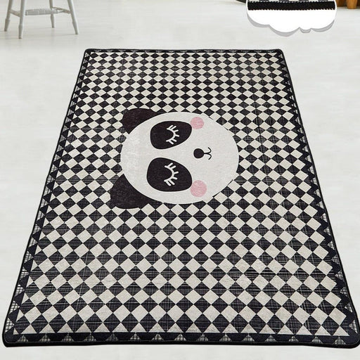 Tüm ayrıntıları görüntüleSiyah Beyaz Kareli Panda Yıkanabilir Antibakteriyel Çocuk Halısı, Kaymaz Taban, Yıkanabilir