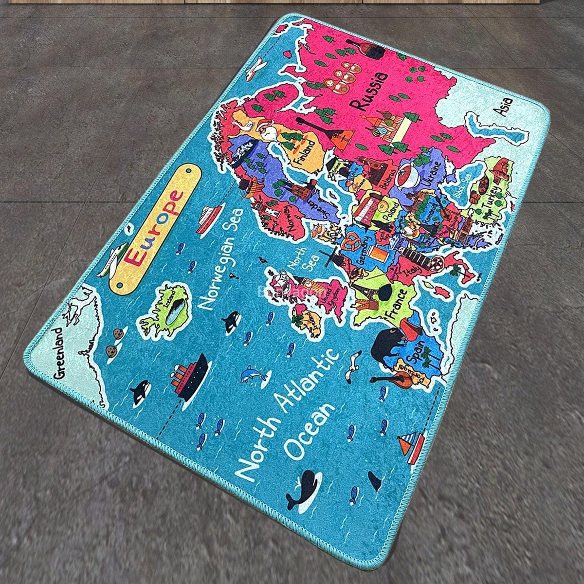 Europa Carta Avrupa Haritası Dijital Baskılı Çocuk Halısı, Kaymaz Taban, Yıkanabilir