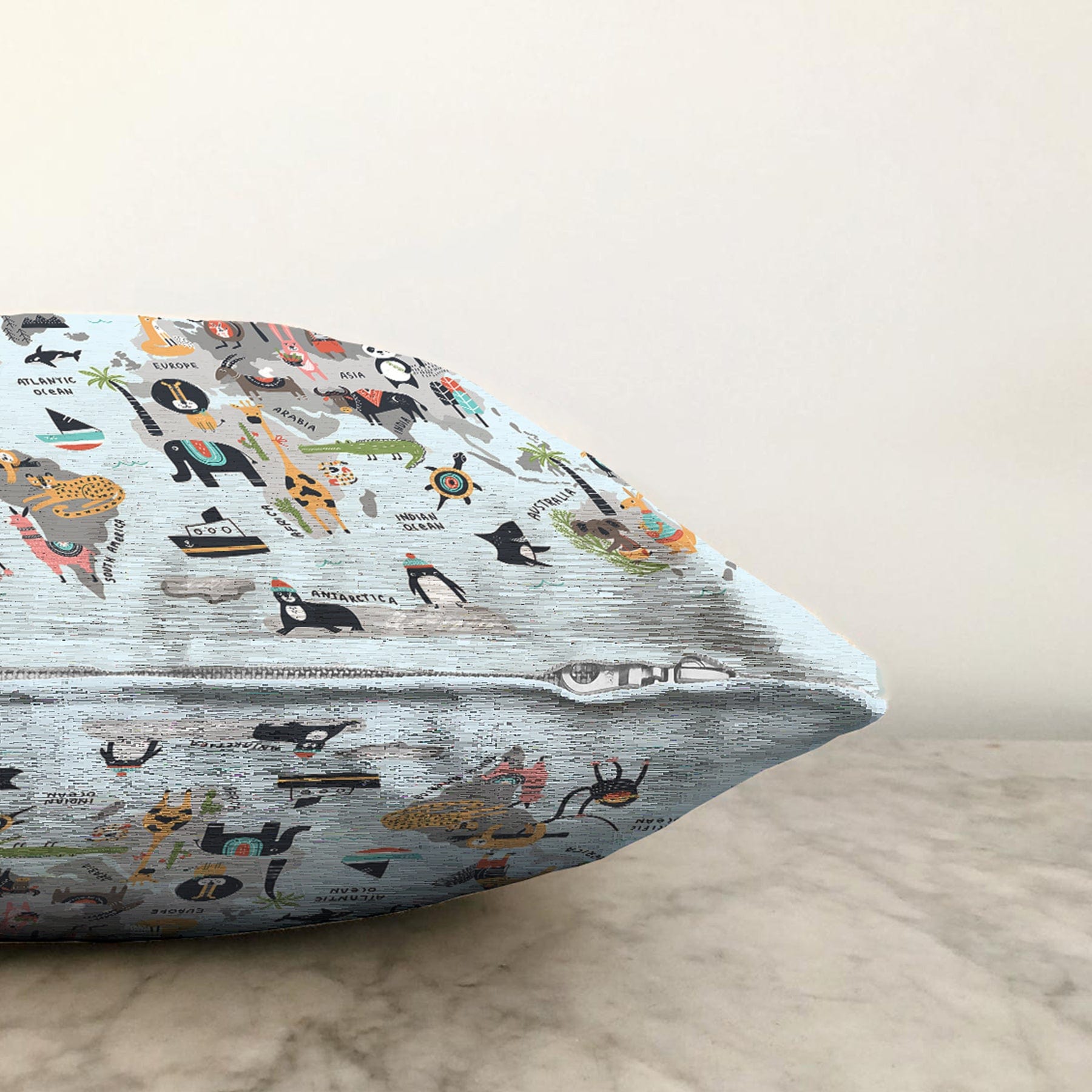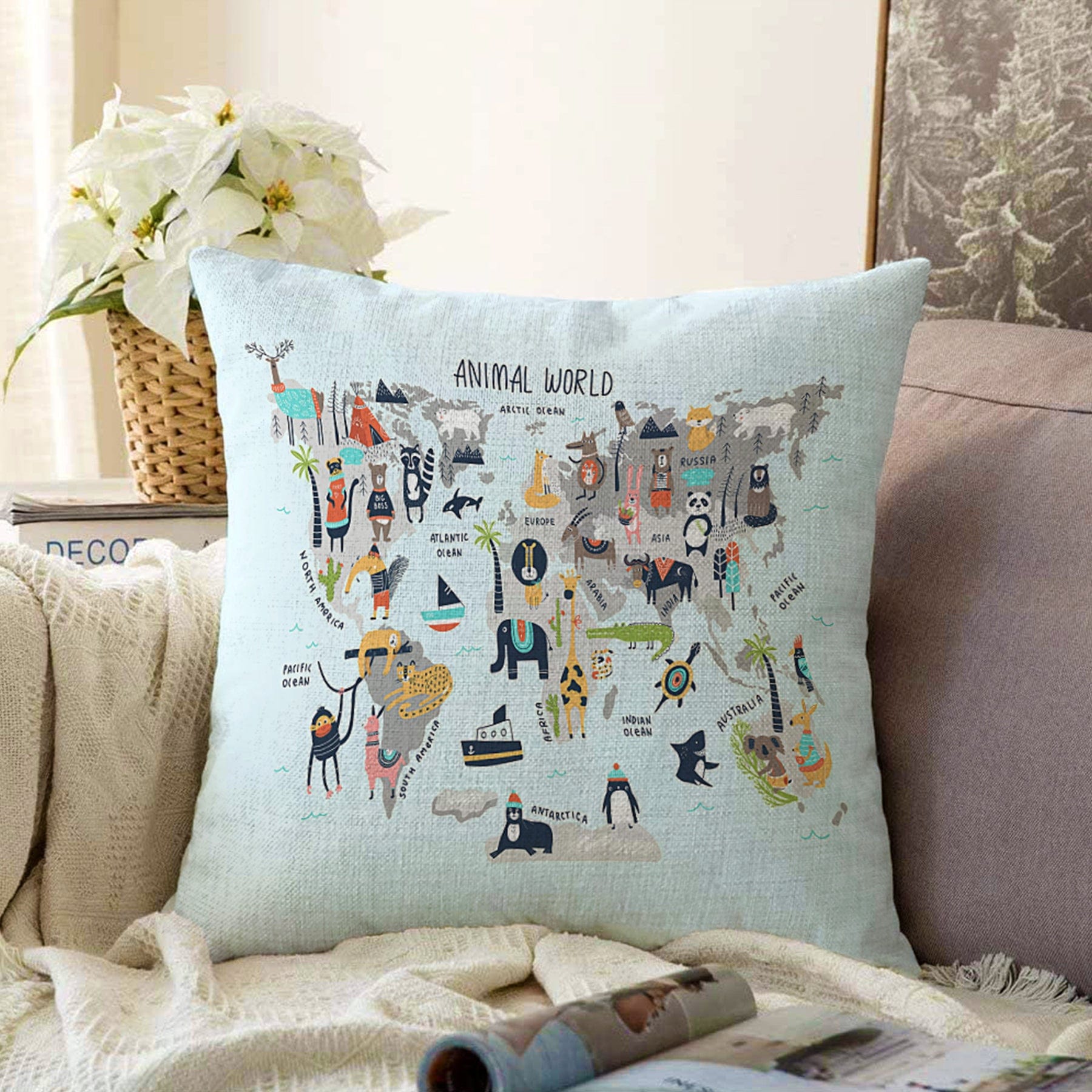 Hayvanların Dünyası Eğitici Tasarımlı Çocuk & Genç Odası Modern Yastık Kırlent Kılıfı