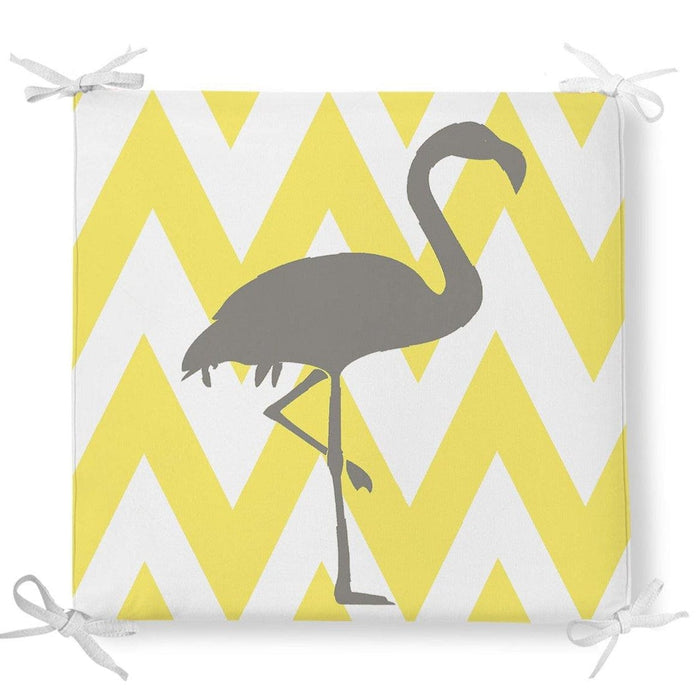Grey Yellow Flamingo Tasarım Fermuarlı Sandalye Minderi 40x40cm