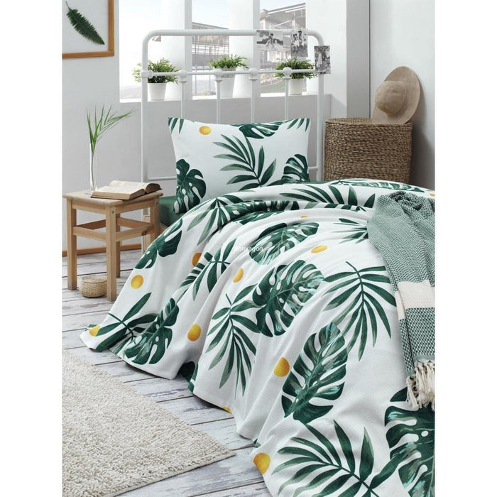 Monstera Yeşil 100% Doğal Pamuk Pike Tek Kişilik