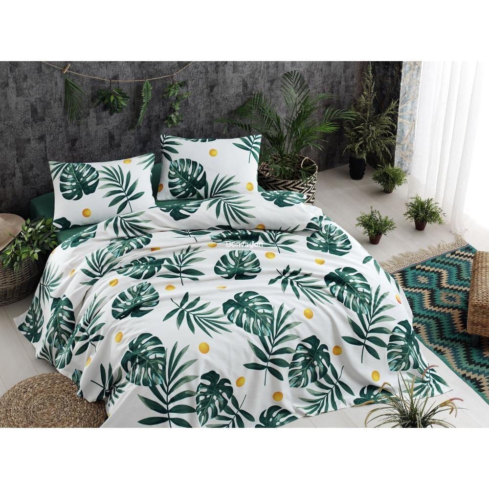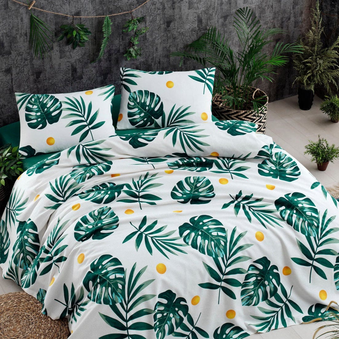 Monstera Yeşil 100% Doğal Pamuk Pike Çift Kişilik