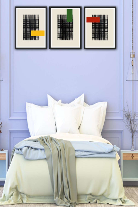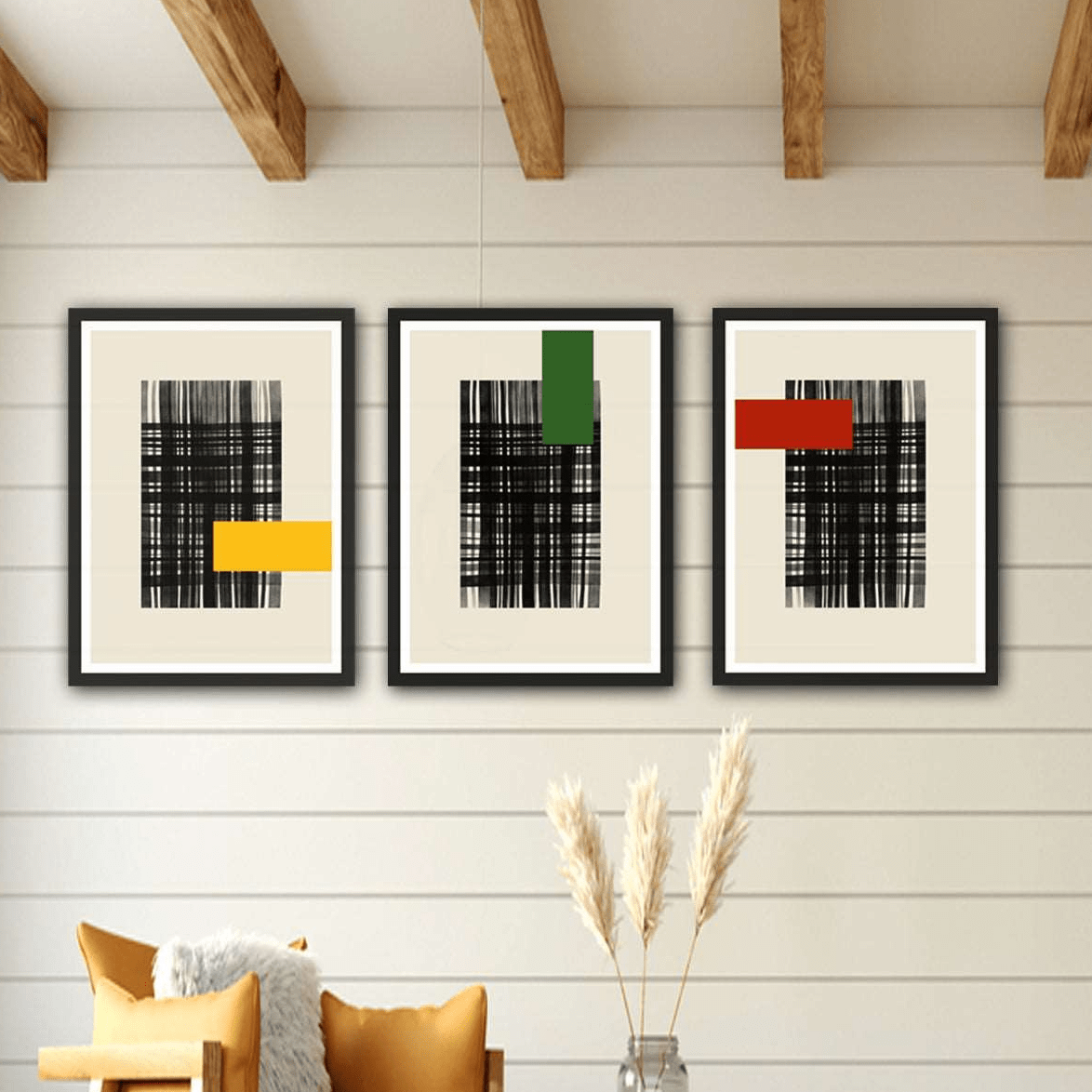 Orijinal World of Walls 3 Parça Modern Sanat Tarzında Siyah Çerçeve Görünümlü Uv Baskı Mdf Ahşap Duvar Tablo Seti