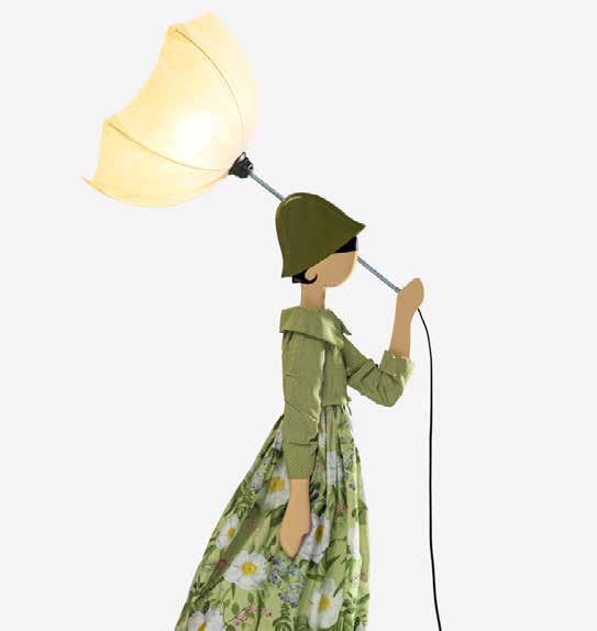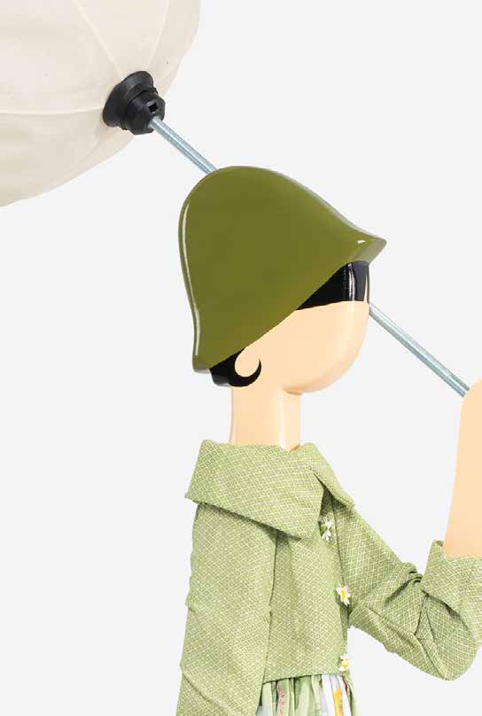 Skitso'ların ters dönmüş şemsiye formundaki aydınlatma başlıkları özel kumaş ve tellerden üretilirken renk seçimi orijinal tasarıma göre belirlenmiştir.