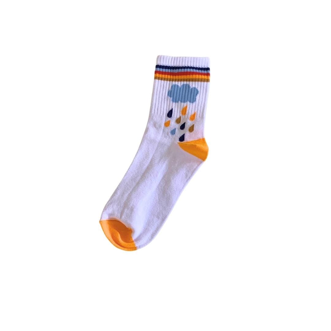 Yağmur Bulutu Desenli Beyaz Sarı Renkli Çorap 36-41