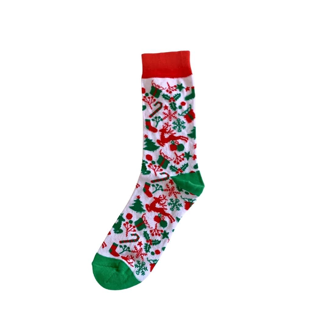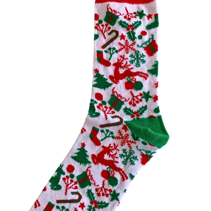 Yılbaşı Desenli Geyik Çam Ağacı Beyaz Kırmızı Yeşil Çorap 38-46