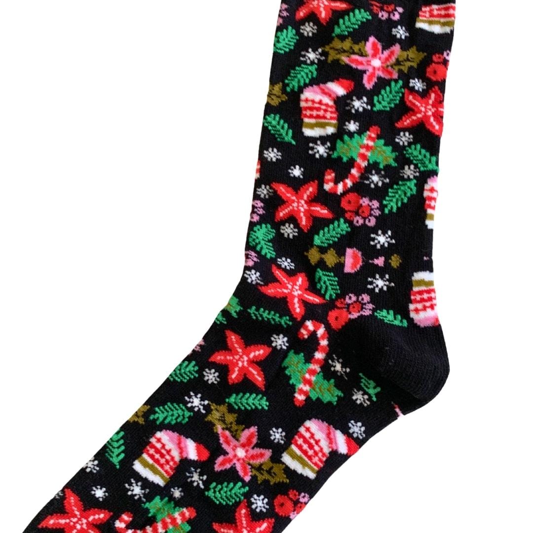 Yılbaşı Desenli Yıldız Çorap Baston Şekerli Siyah Renkli Çorap 38-46