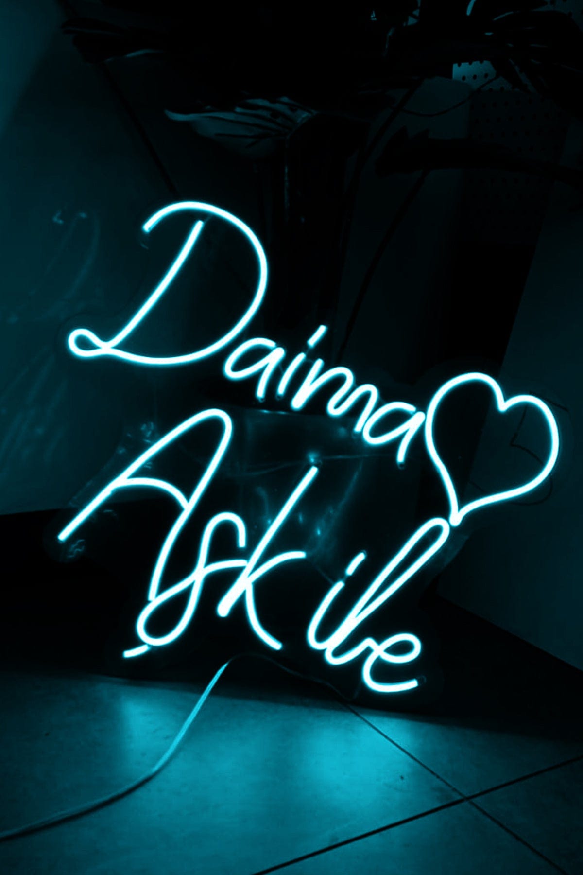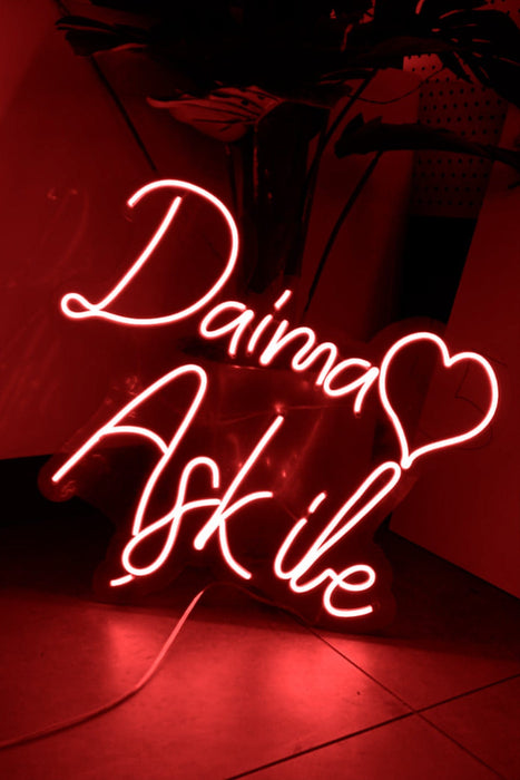 Kalpli Daima Aşk İle Yazılı Neon LED Işıklı Tablo Düğün ve Kutlama Duvar Dekorasyon