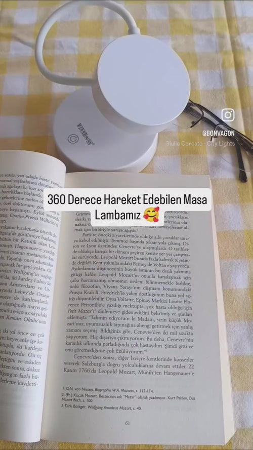 Bu şarj edilebilir masa lambası, modern tasarımı ve fonksiyonel özellikleriyle hem ev hem de ofis kullanımı için idealdir. 360 derece dönebilen LED lamba, esnek boyun yapısı sayesinde istenilen yöne kolayca ayarlanabilir. Dokunmatik açma-kapama özelliği ile kullanım kolaylığı sağlayan bu lamba, USB ile şarj edilebilir olması sayesinde kablosuz özgürlük sunar. Kitap okuma, çalışma veya gece lambası olarak mükemmel bir aydınlatma çözümüdür.