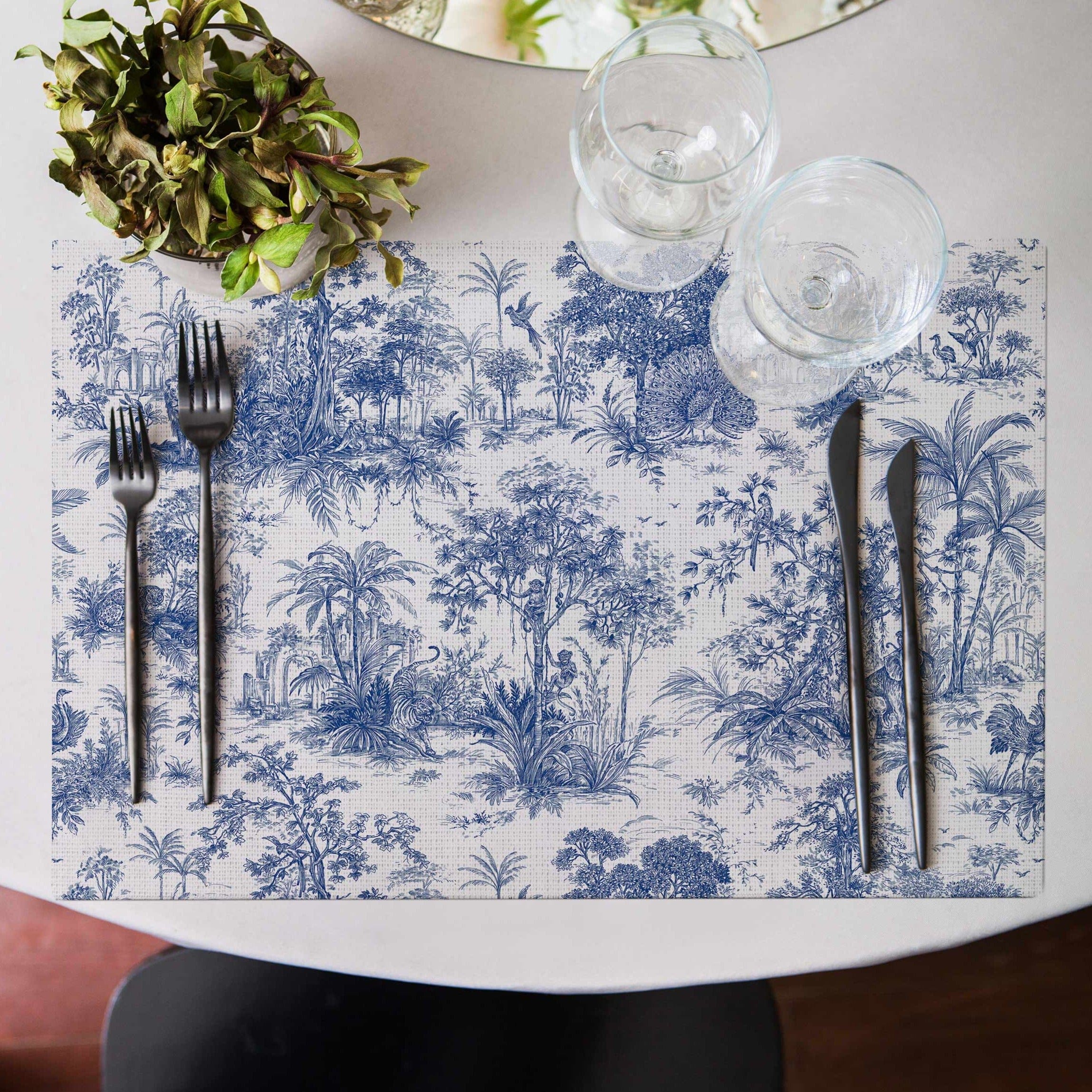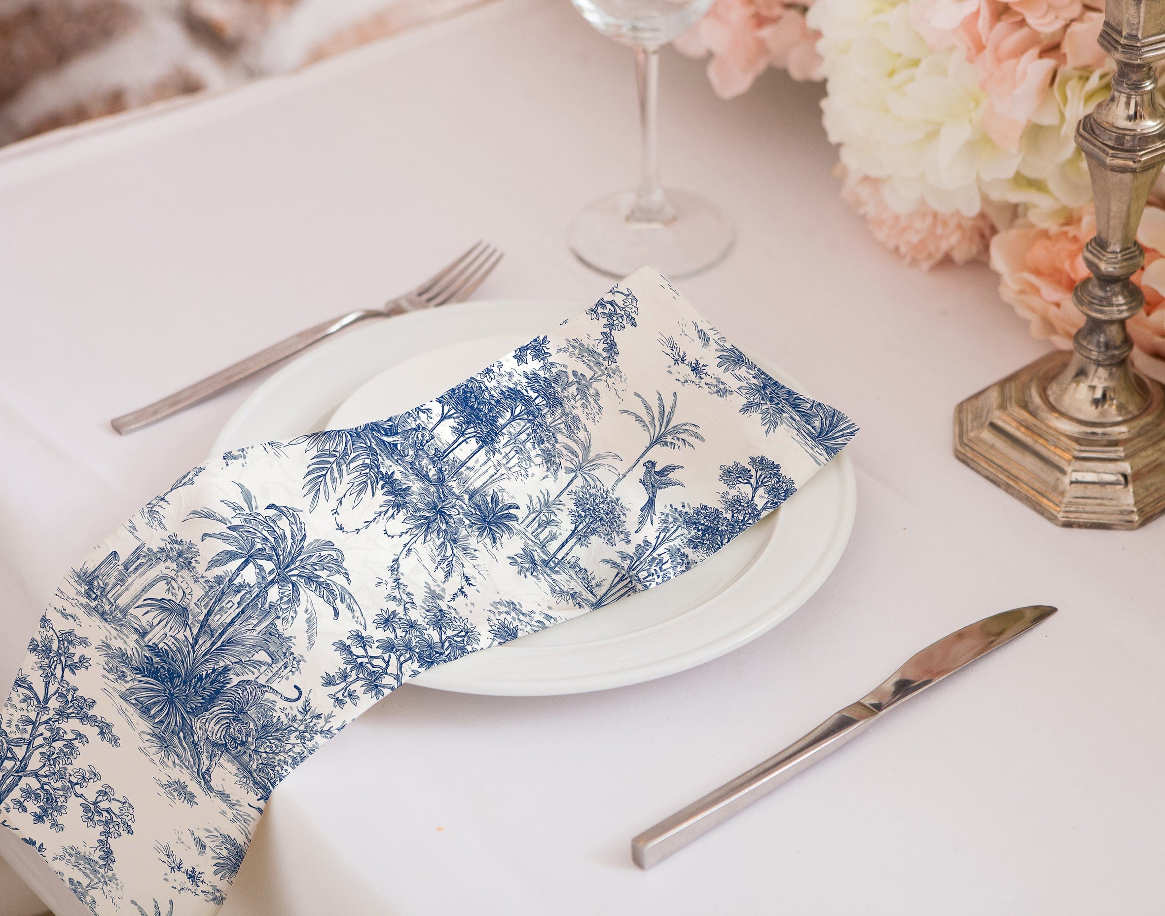 Egzotic Blue Print 4lü İnce Keten Kumaş Amerikan Servisi 50x35cm