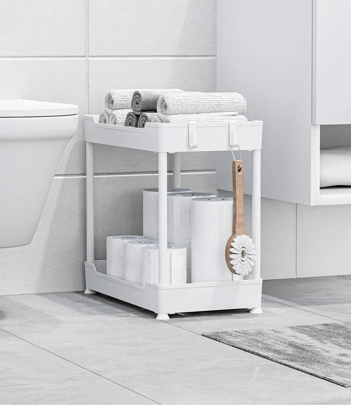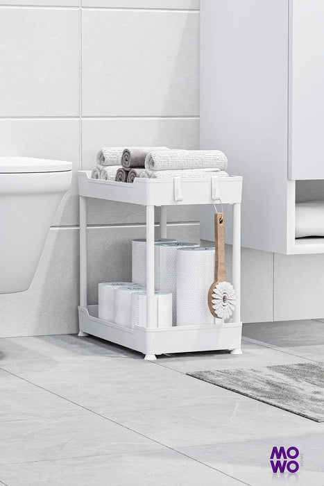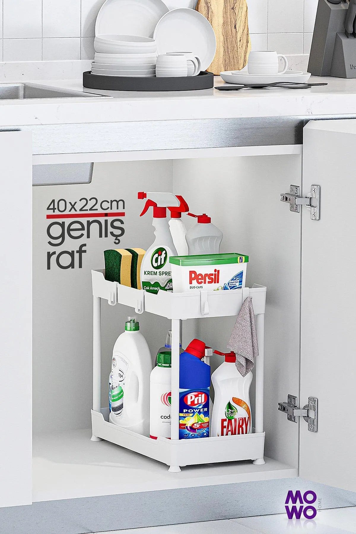 2 Katlı Evye Altı Düzenleyici Raf Beyaz