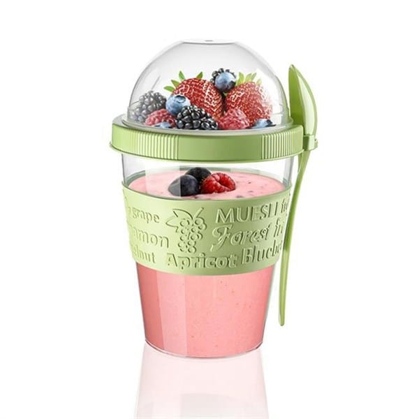 Take&Go Kapaklı Kaşıklı Hazırla Ve Çık Meyveli Yoğurt Kabı Özellikle diyet yaparken hafif ve doyurucu atıştırmalıkların tüketilmesi gerektiği zamanlarda çeşitli meyveler, yulaf ve yoğurt birlikteliği ile hazırladığınız ara öğünlerinizi muhafaza edebileceğiniz kapaklı kaşık hazneli yoğurt kabıdır. -Pratik kapaklı meyveli yoğurt kabı ile hazırladığınız güzel karışımların taşmasını önleyecek şekilde kilitlenebilir emniyet kapağı mevcuttur. Kabının yanına ayrılmış olan bölmede sabitlenen kaşığı da mevcuttur. -Böylelikle ihtiyacınız olan tüm parçalar kolaylıkla taşıyabileceğiniz formda bir arada bulunmaktadır. -Kapaklı Kaşıklı Pratik Beslenme Kabı ile meyveli yoğurtlarınızı yemeniz çok kolay. -Pratik Yoğurt beslenme kabı, stok durumuna göre karışık renklerde gönderilecektir. Ürün Boyutları: Ürün Boyutları: 18cm x 10cm x 10cm Paket Boyutları: 20cm x 11cm x 11cm Ağırlık: 103 grDesi: 0. 6 desi