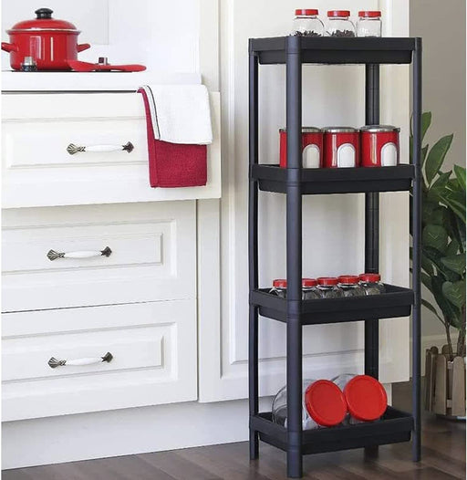 Siyah Dört Raflı Düzenleyici Balkon, mutfak, banyo ve evin diğer odalarında kullanabileceğiniz dörtlü raf sistemiyle eşyalarınızı düzenleyebilirsin...