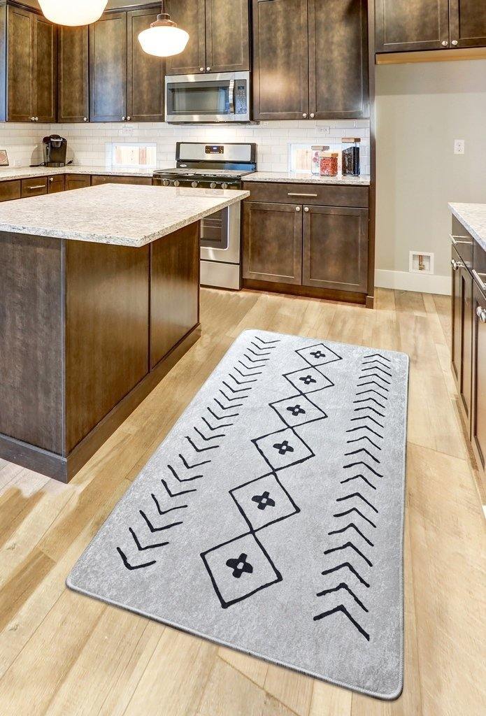 Fiona Ekru Dijital Baskılı Halı, Kaymaz Taban, Yıkanabilir