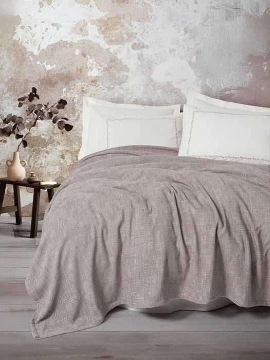 Embrova Şönil Çift Kişilik Yatak örtüsü / Pike Takımı Loom Bej 4 Adet Yastık Kılıfı