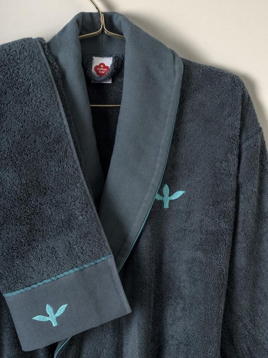 Punch Nakışlı Aile Bornoz Seti Gaja Bej Petrol