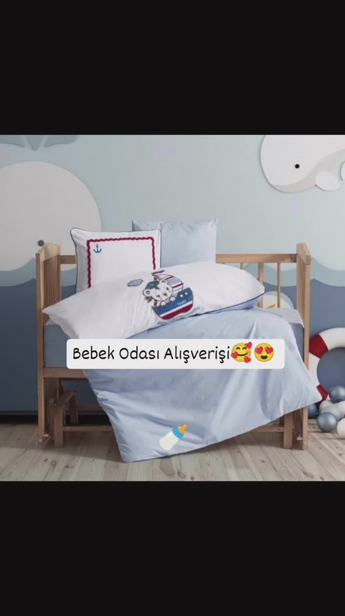 Punch Nakışlı Bebek Nevresim Takımı Miniyo Mavi 57 Tel %100 Pamuk