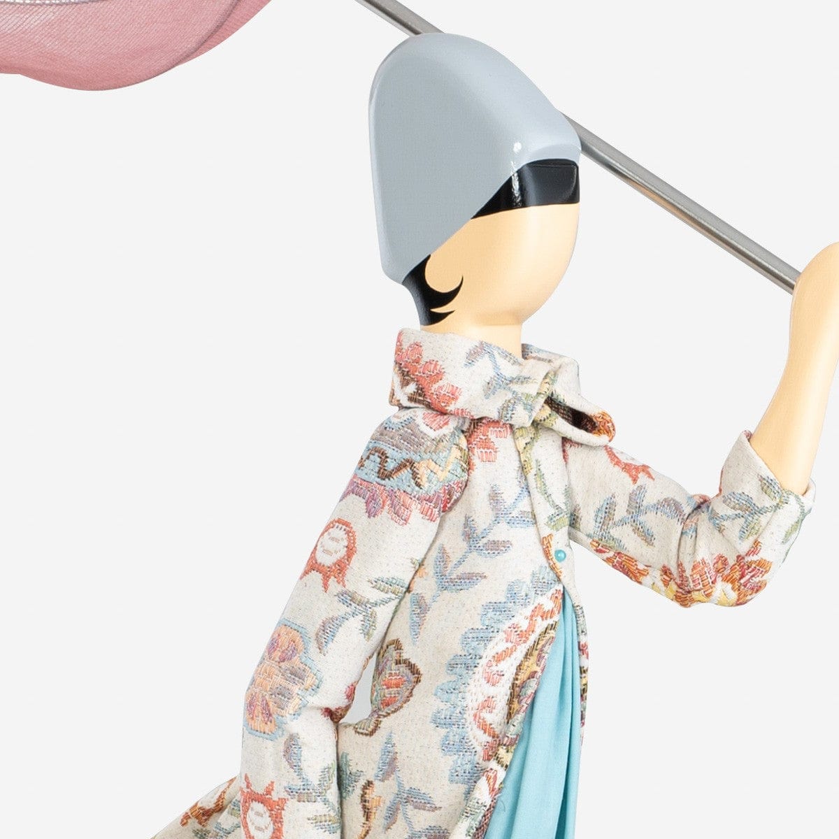 Skitso'ların ters dönmüş şemsiye formundaki aydınlatma başlıkları özel kumaş ve tellerden üretilirken renk seçimi orijinal tasarıma göre belirlenmiştir.