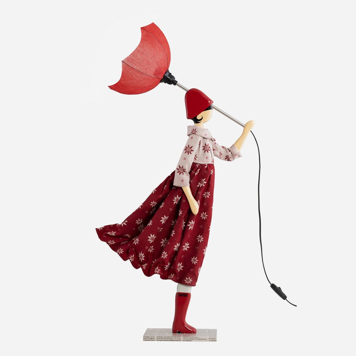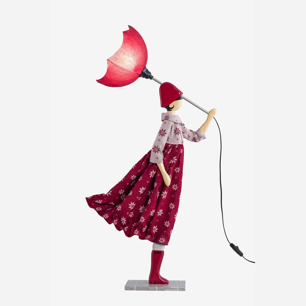 Skitso'ların ters dönmüş şemsiye formundaki aydınlatma başlıkları özel kumaş ve tellerden üretilirken renk seçimi orijinal tasarıma göre belirlenmiştir.