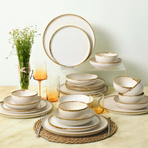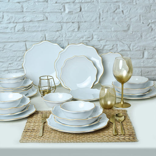 Beyaz Gold Fileli Romeo Yemek Takımı 24 Parça 6 Kişilik Modern formlar ile tasarlanan 6 kişilik romeo yemek takımı, usta ellerle şekillenerek özenl...