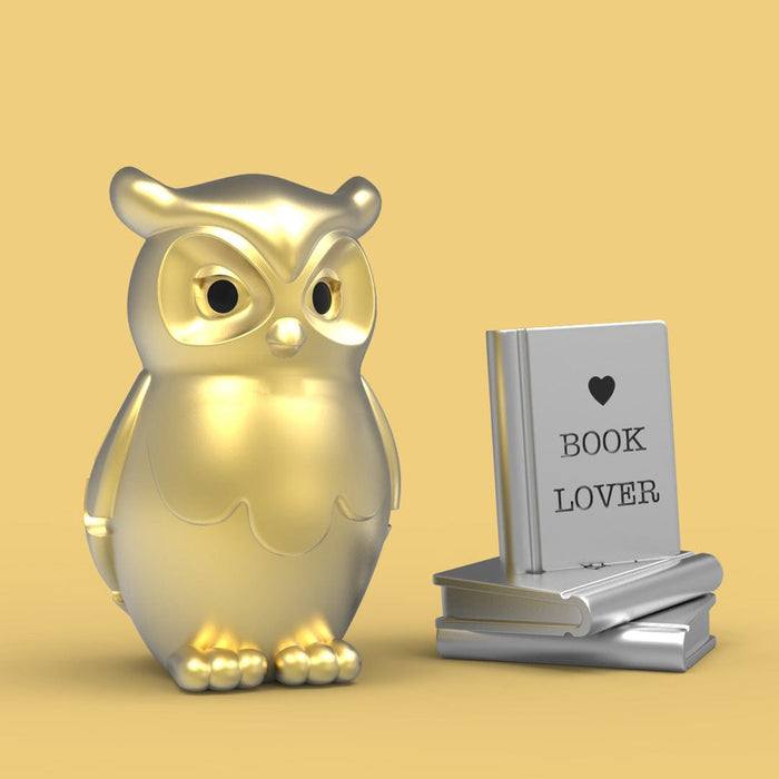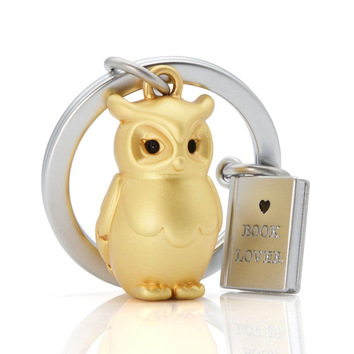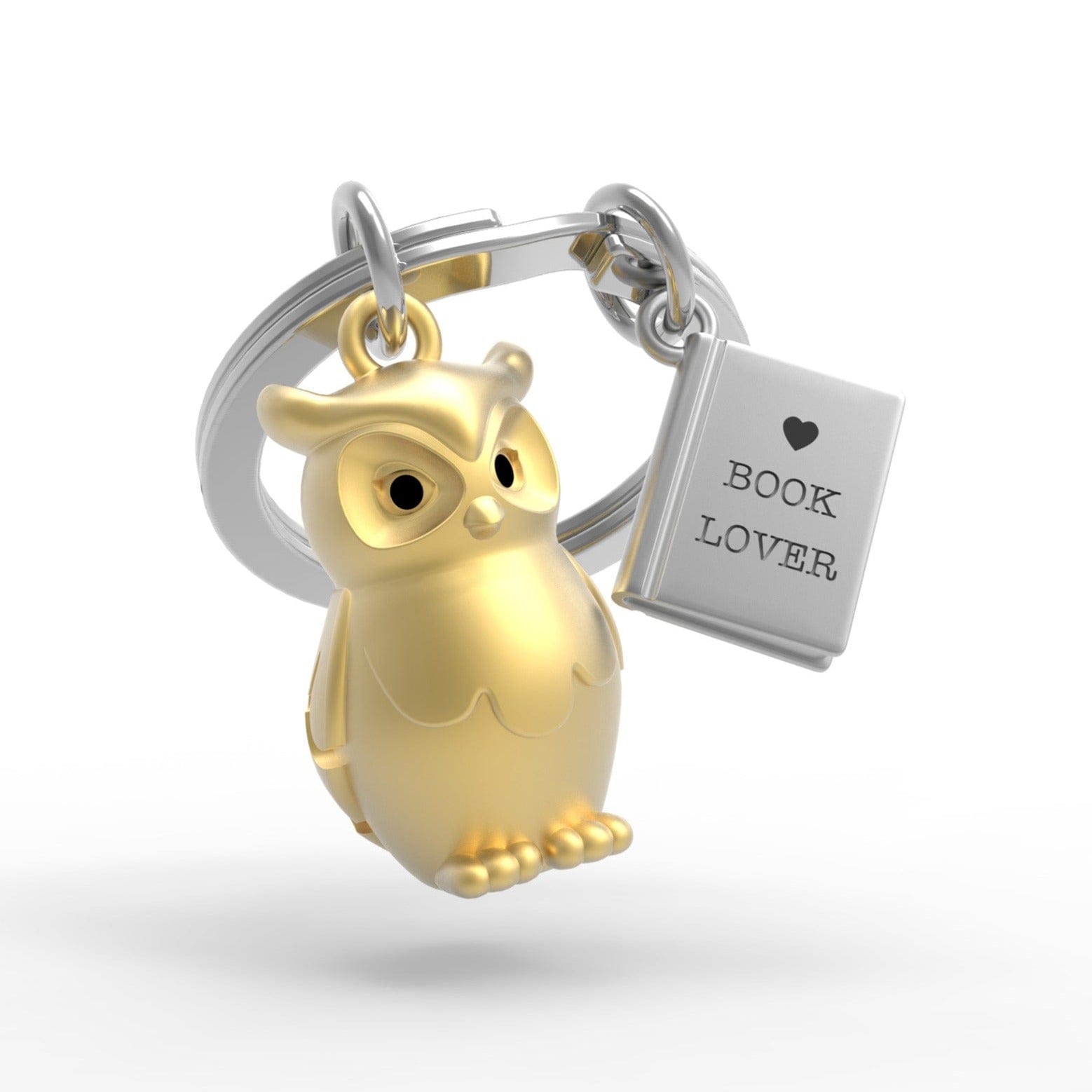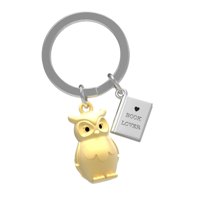 Baykuş ve Kitap Çelik Halkalı Anahtarlık