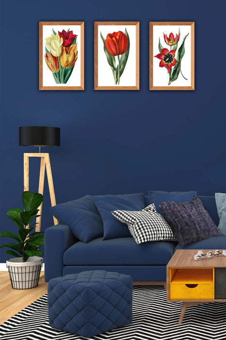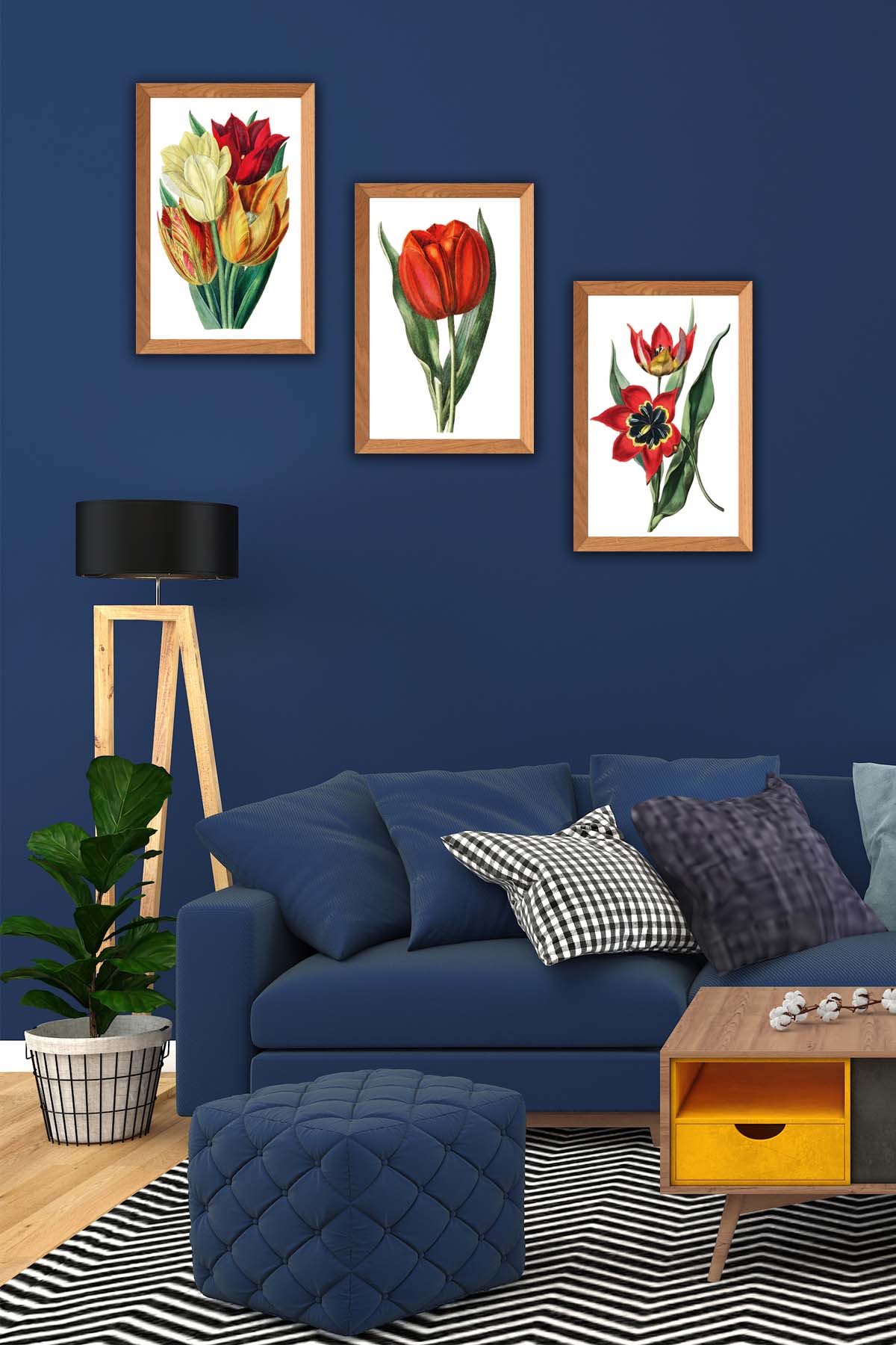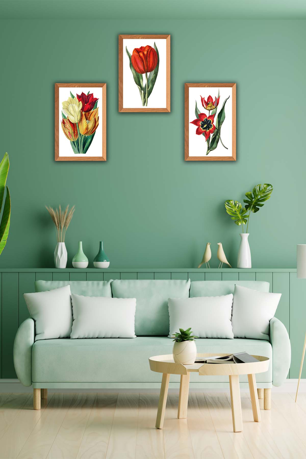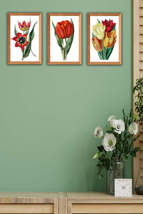 Orijinal World of Walls 3 Parça Çerçeve Görünümlü Çiçek Desenli Ahşap Duvar Tablo Seti