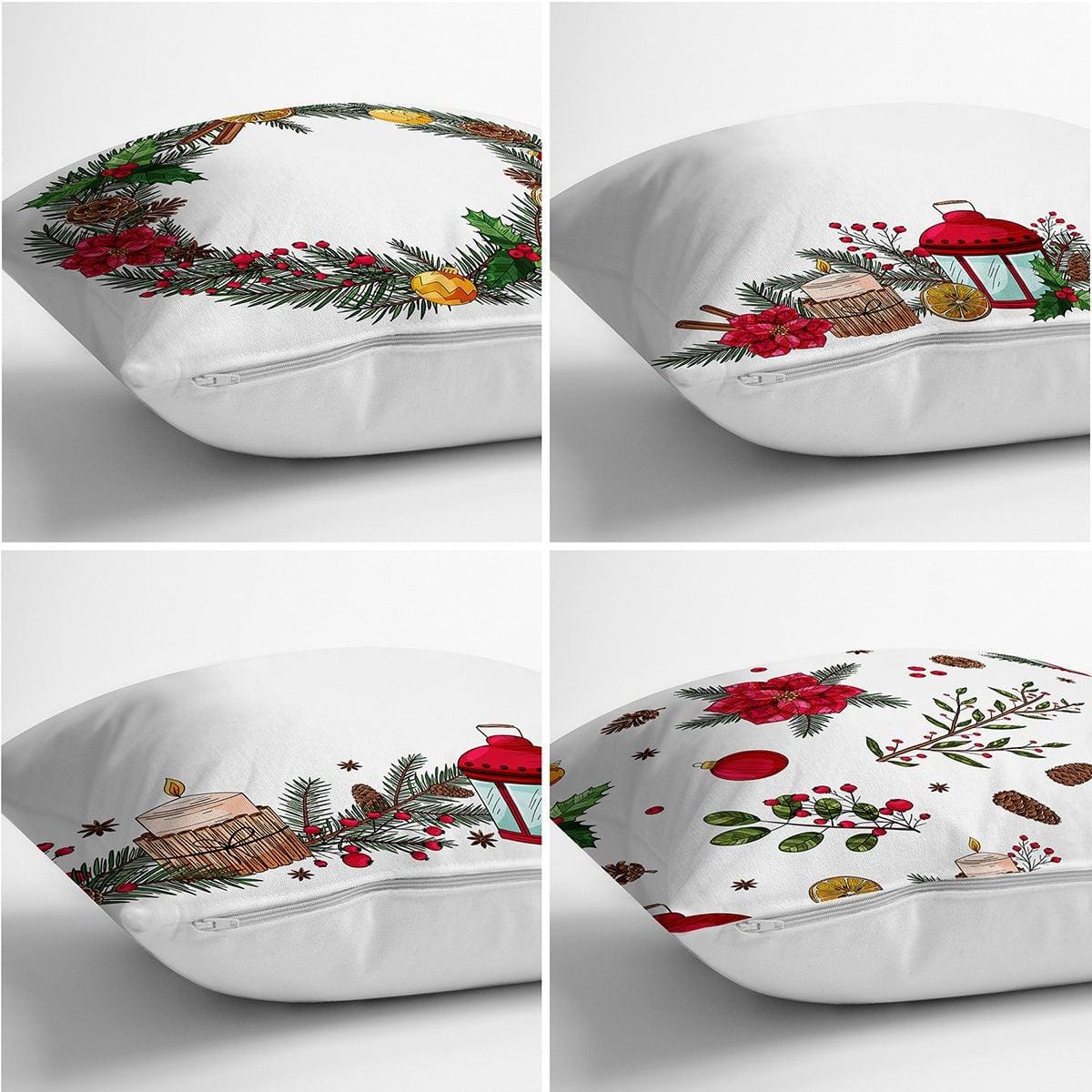 Yılbaşı Özel Tasarımlı Dijital Baskılı Modern 4lü Kırlent Kılıfı Seti