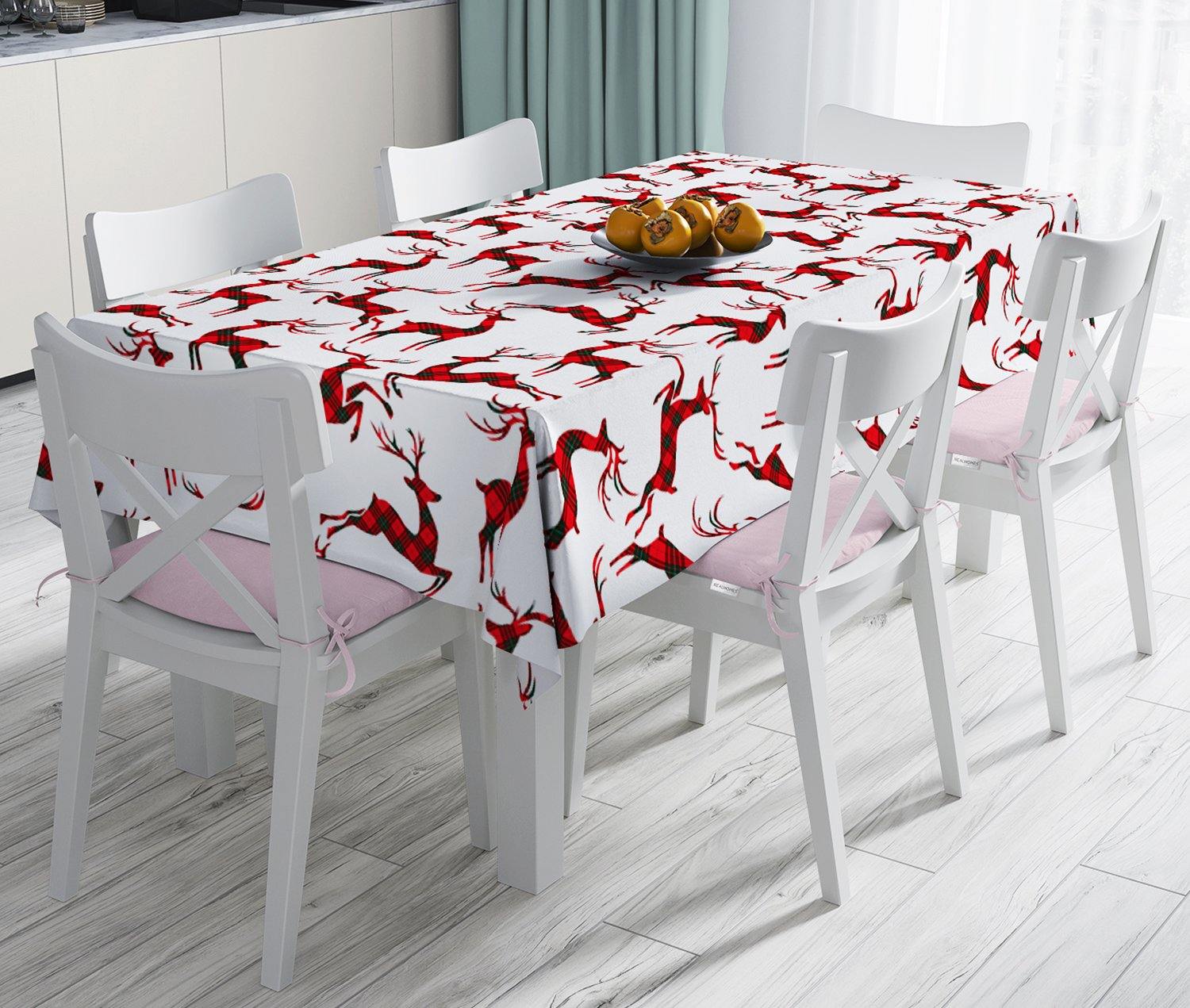 Ekose Geyik Motifli Özel Tasarım Dijital Baskı Masa Örtüsü