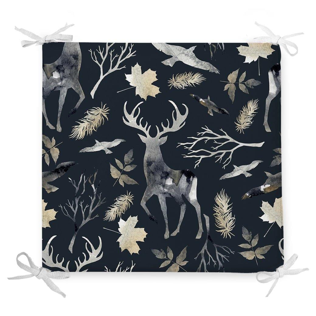 Siyah Zeminde Geyik ve Yaprak Desenli Fermuarlı Sandalye Minderi
