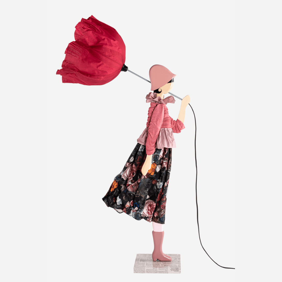 Skitso'ların ters dönmüş şemsiye formundaki aydınlatma başlıkları özel kumaş ve tellerden üretilirken renk seçimi orijinal tasarıma göre belirlenmiştir.