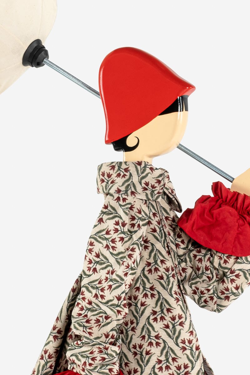 Skitso'ların ters dönmüş şemsiye formundaki aydınlatma başlıkları özel kumaş ve tellerden üretilirken renk seçimi orijinal tasarıma göre belirlenmiştir.