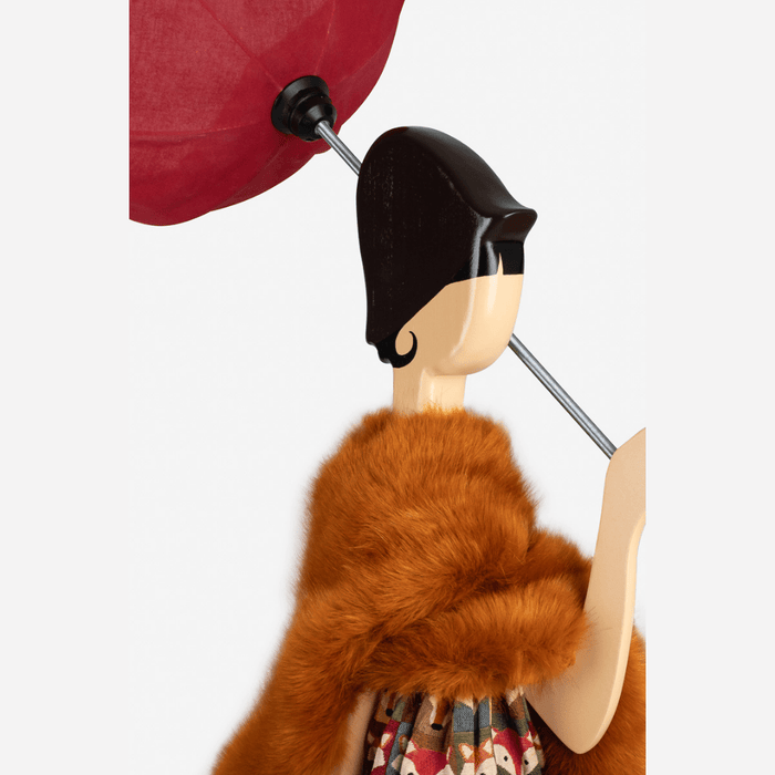 Skitso'ların ters dönmüş şemsiye formundaki aydınlatma başlıkları özel kumaş ve tellerden üretilirken renk seçimi orijinal tasarıma göre belirlenmiştir.