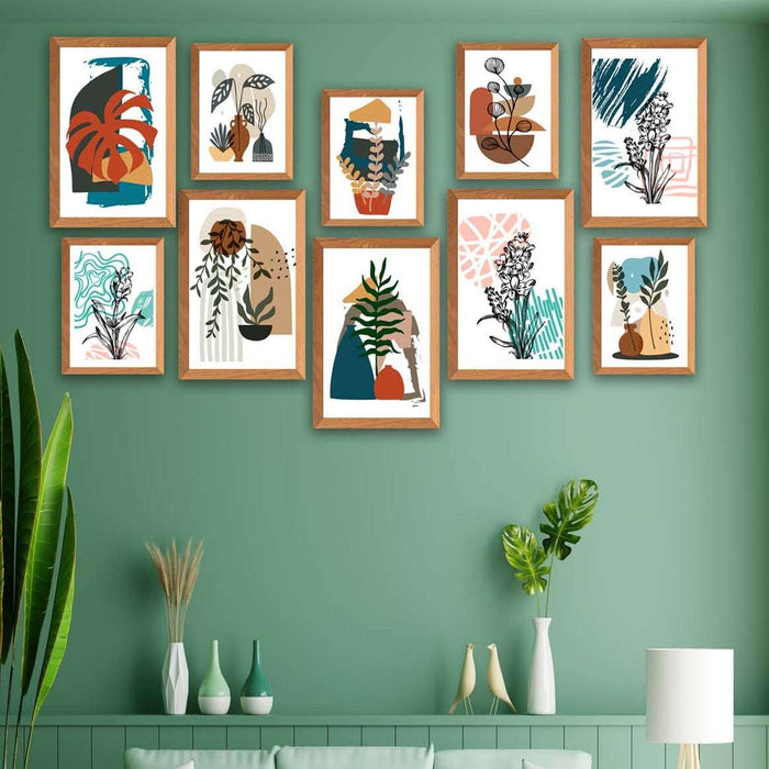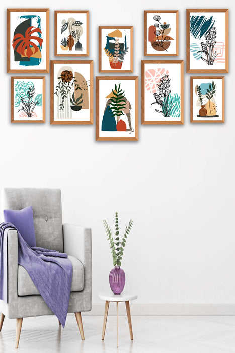 Orijinal World of Walls 10 Parça Bohem Tarzında Çerçeve Görünümlü Uv Baskı Mdf Ahşap Duvar Tablo Seti