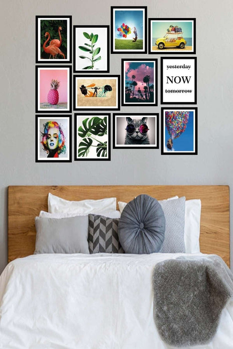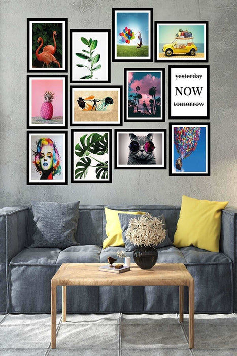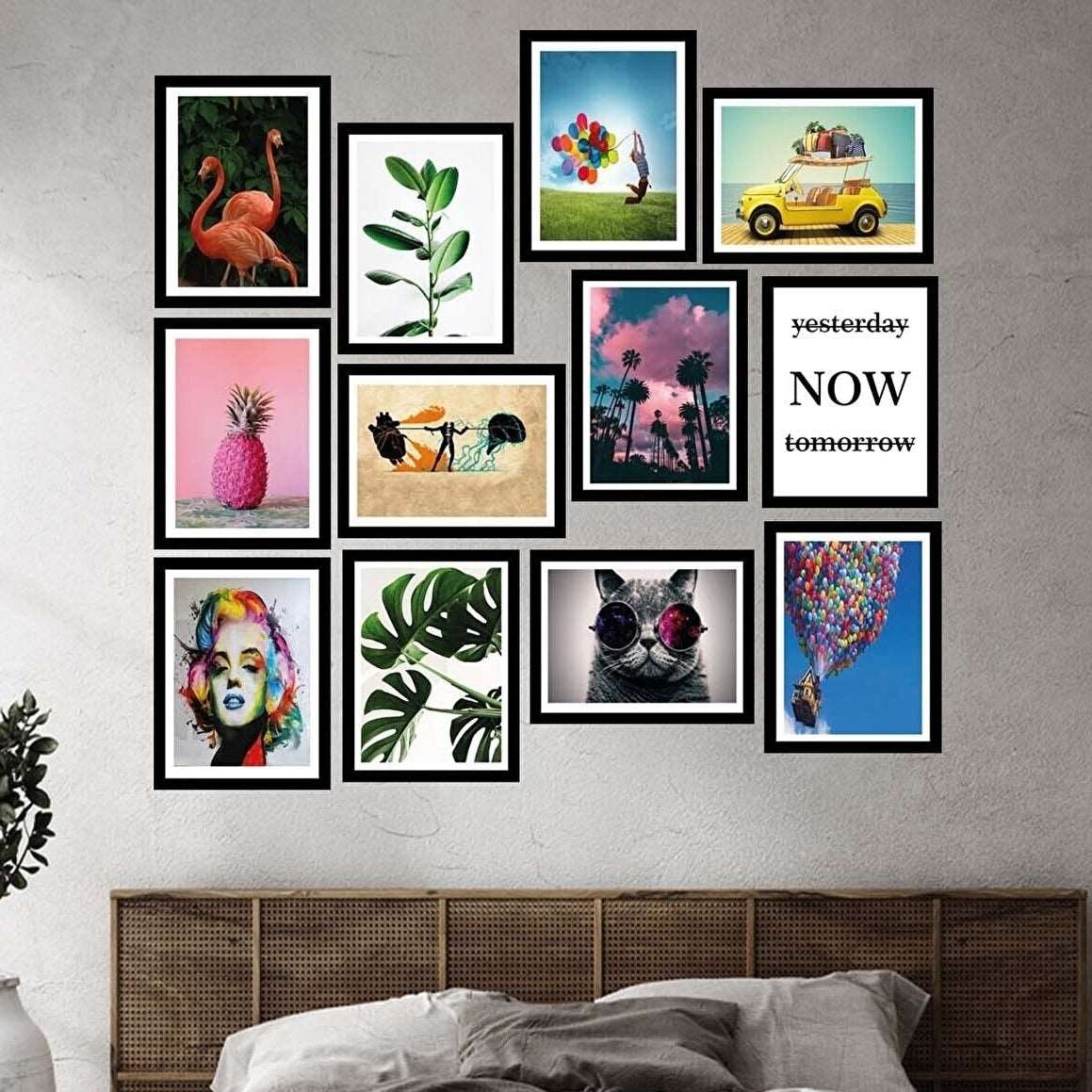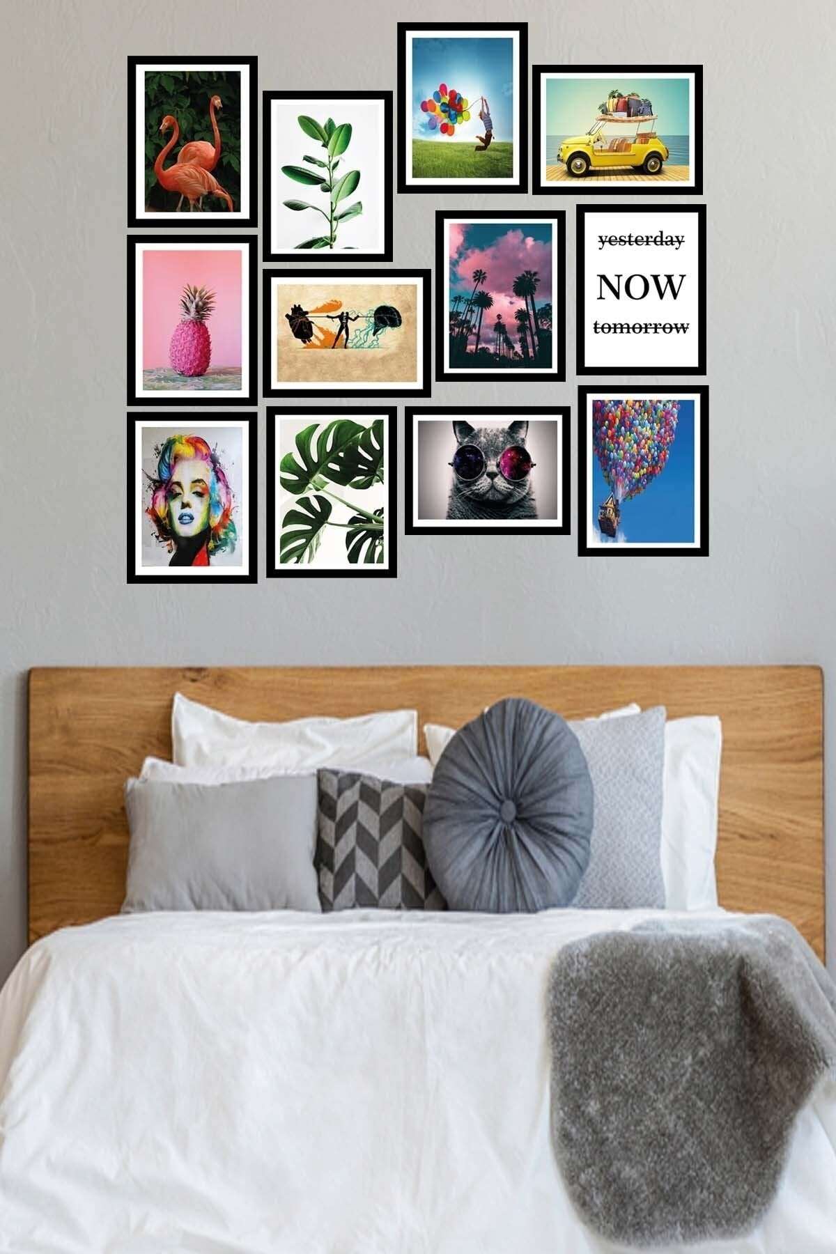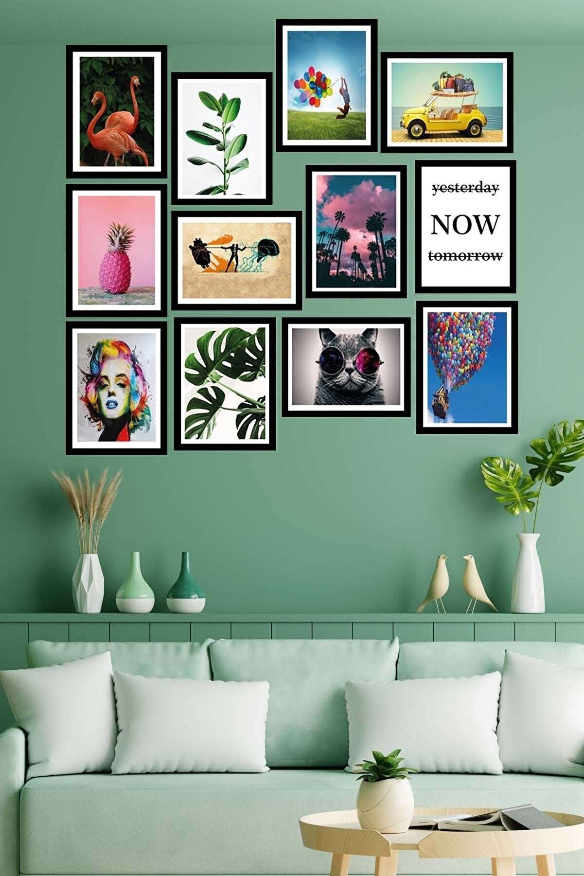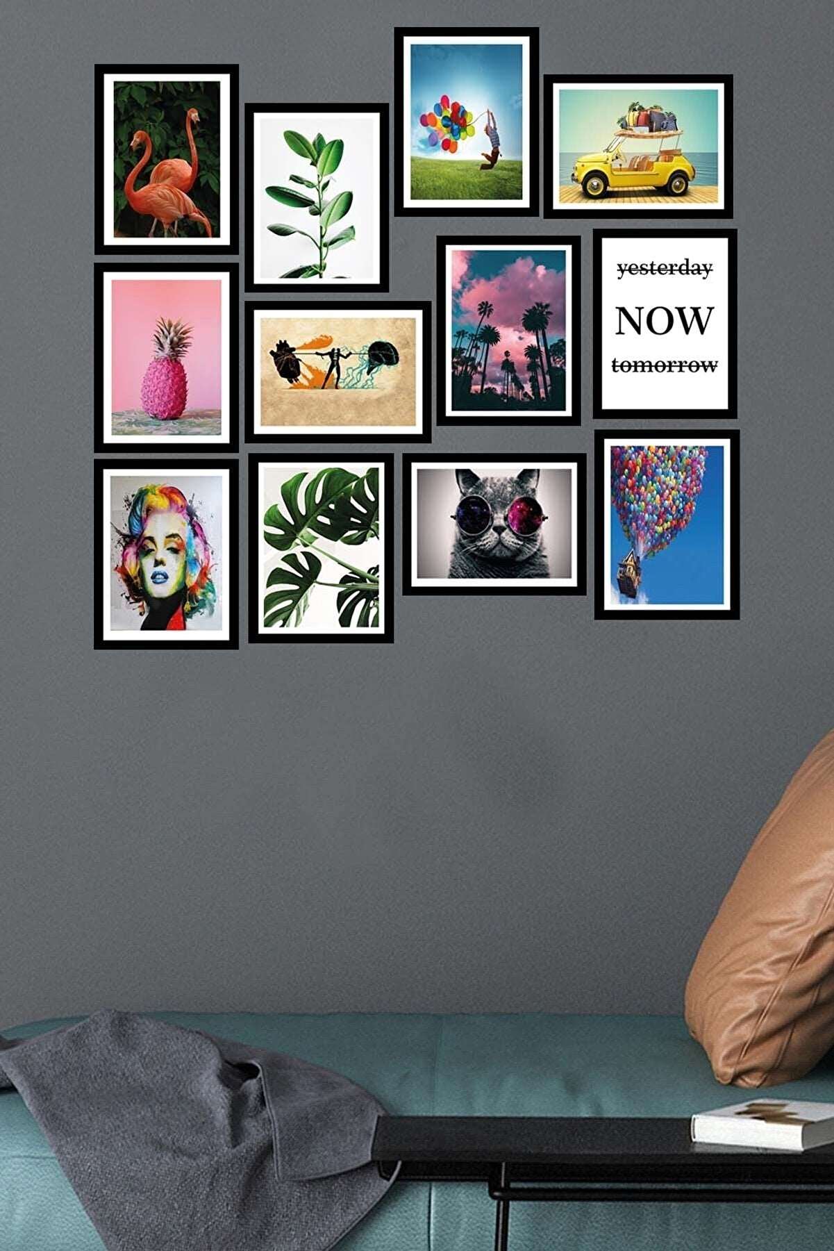 Orijinal World of Walls 12 Parça Birbirinden Farklı Dijital Baskı Siyah Çerçeve Görünümlü Ahşap Duvar Tablo Seti