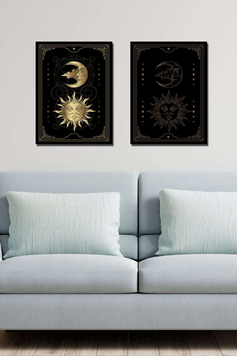 Orijinal World of Walls 2 Parça Güneş ve Ay Ahşap Duvar Tablo Seti
