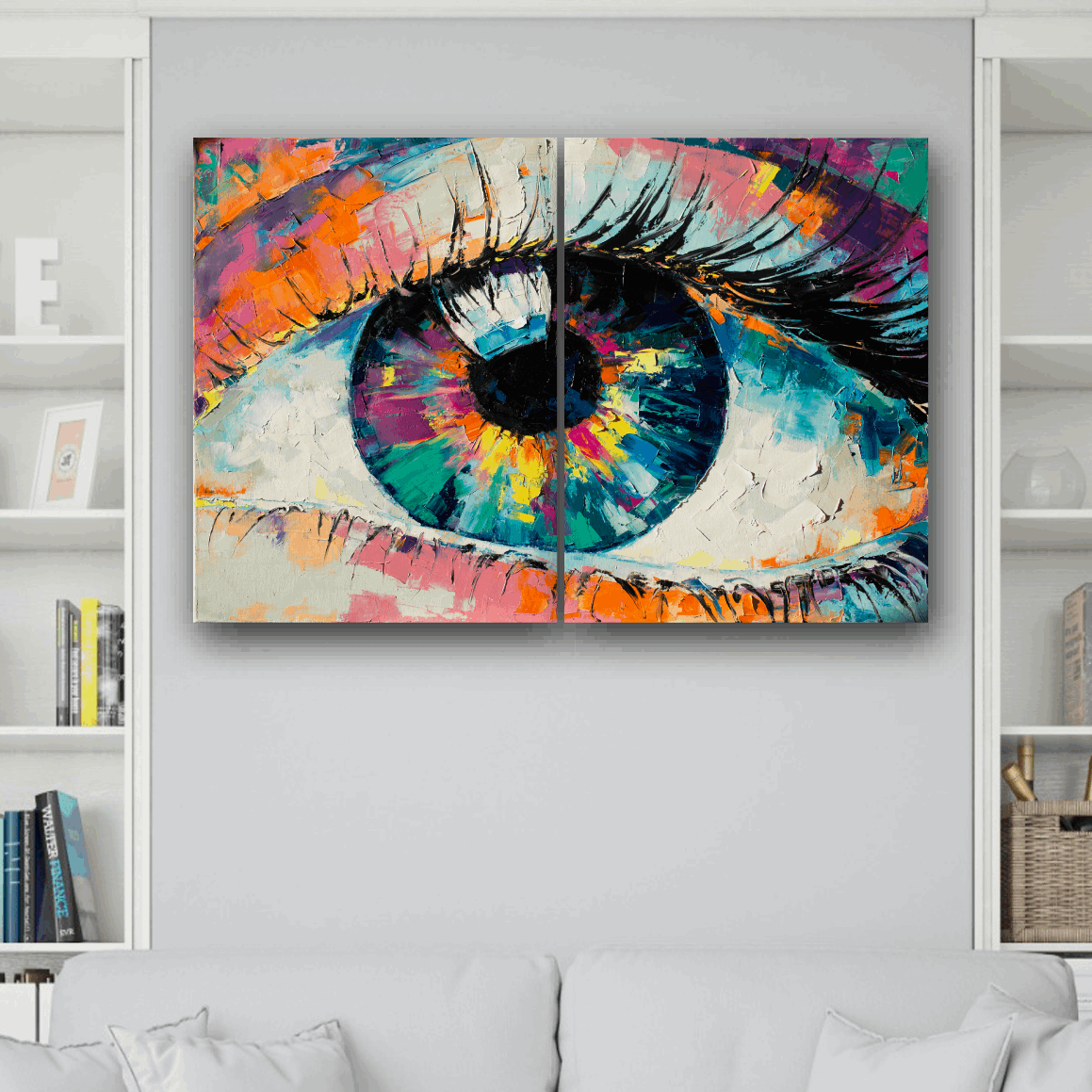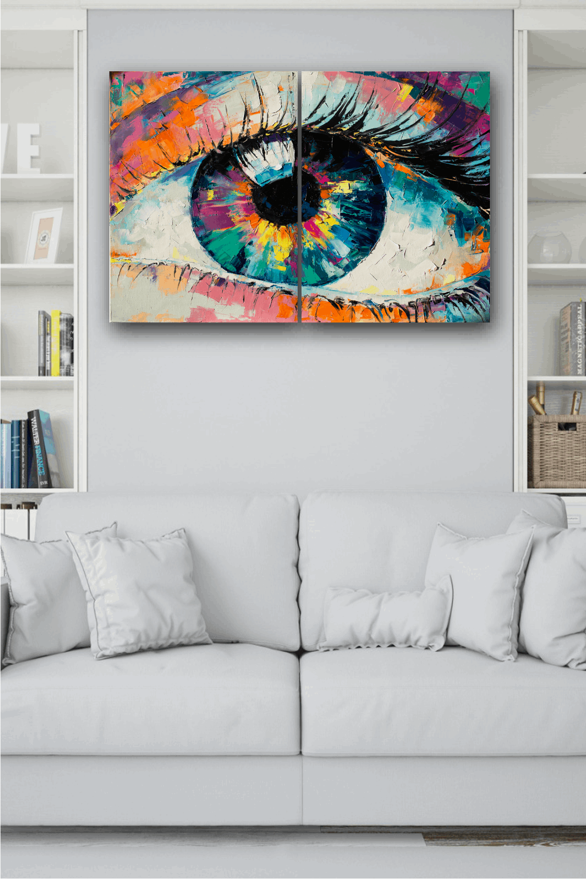 Orijinal World of Walls 2 Parça Yağlı Boya Tarzında Dijital Baskı Ahşap Duvar Tablo Seti